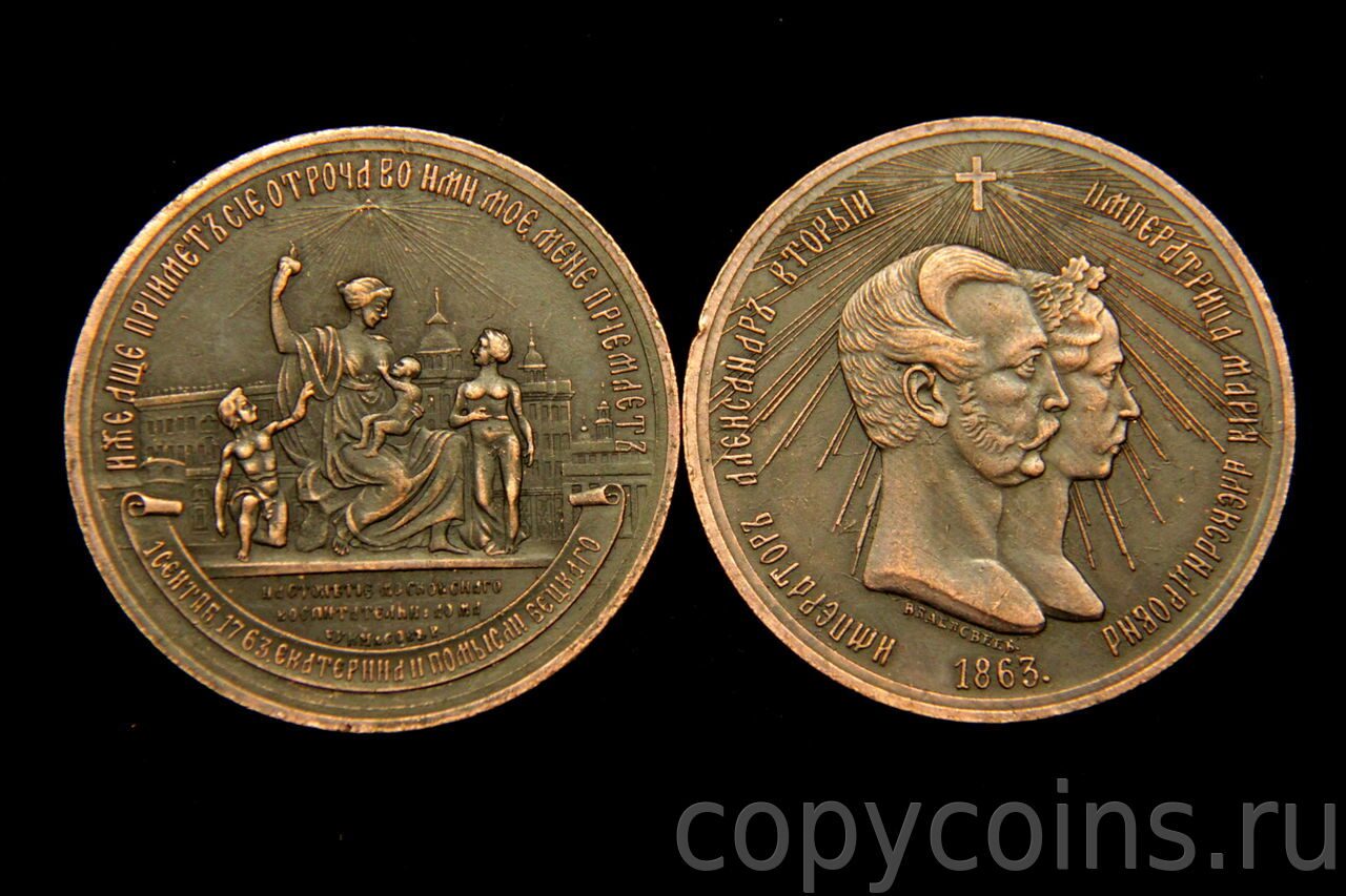 Медаль в память столетия Императорского Московского Воспитательного дома 1863 год медь